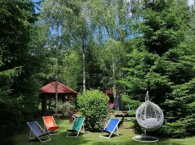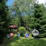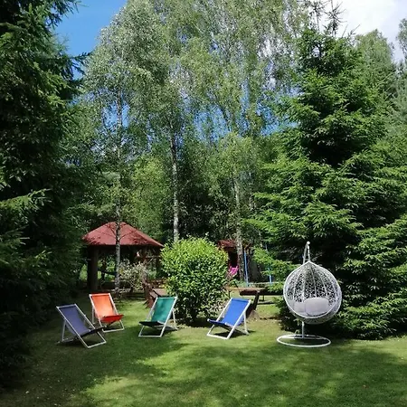 A kertre néző terasszal rendelkező Mazurskidom Zascianek Świętajno villa 43 perces autóútra fekszik a Megfizetheto repulojegyek a Skyscannerrel repülőtértől.